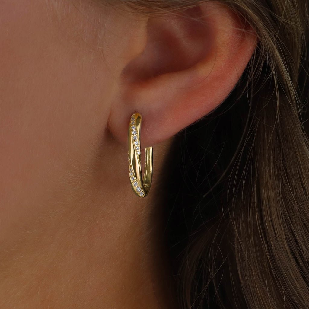 Elegáns ezüst fülbevaló az outfit szép kiegészítésére.