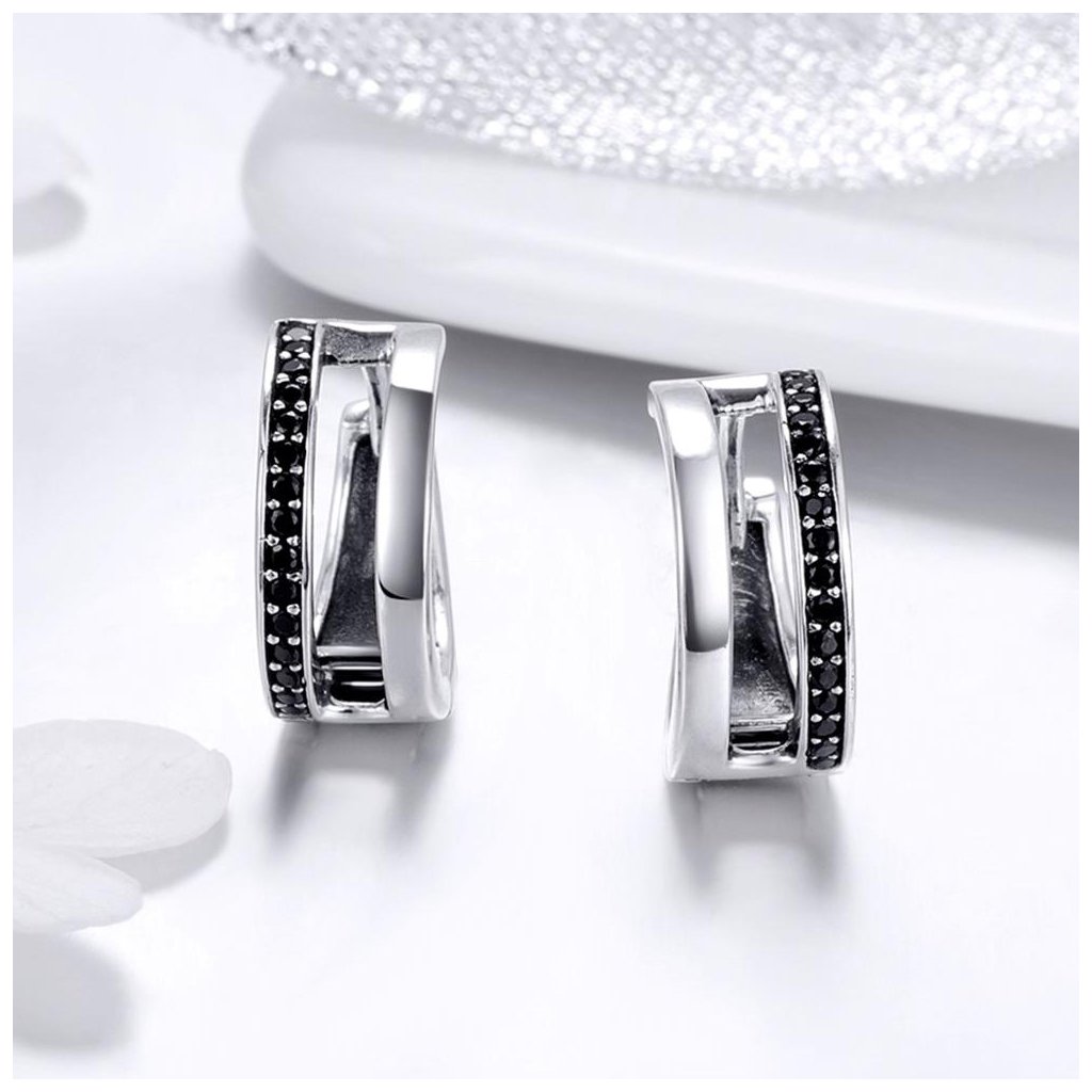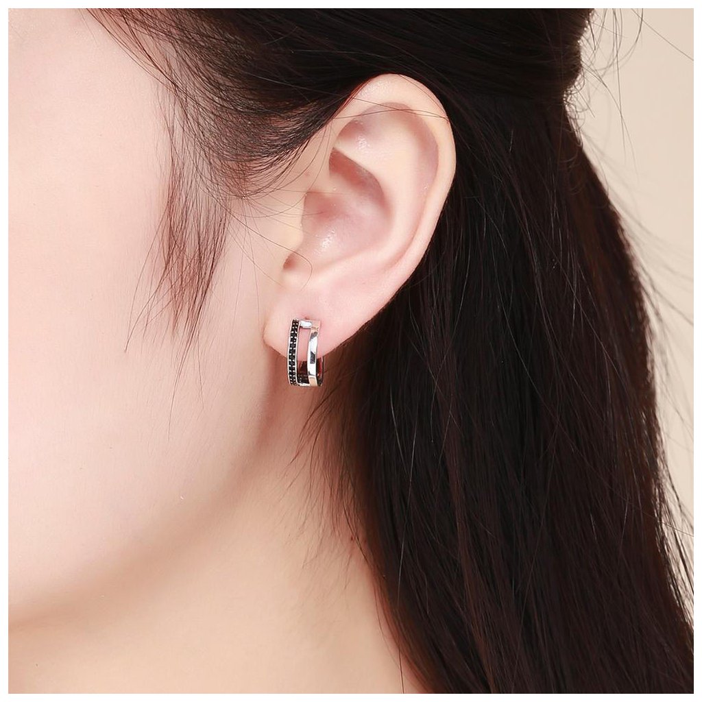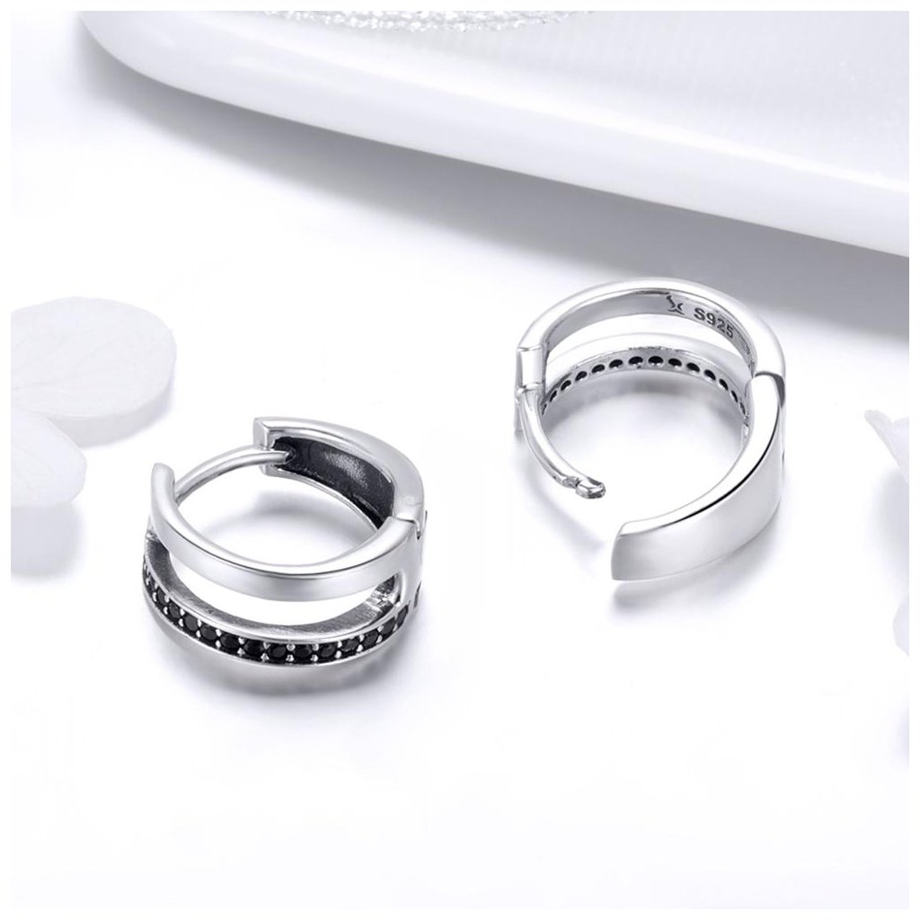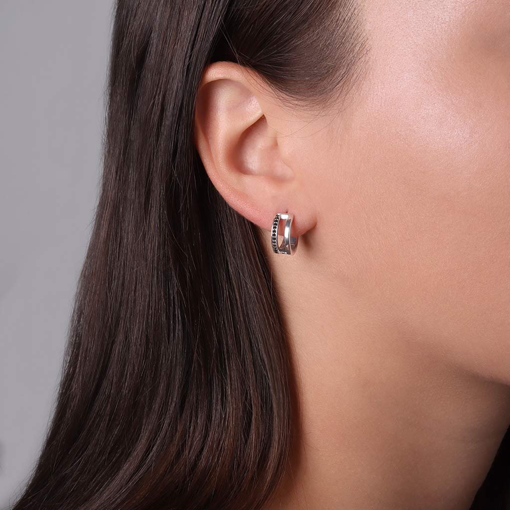 Elegáns ezüst fülbevaló az outfit szép kiegészítésére.