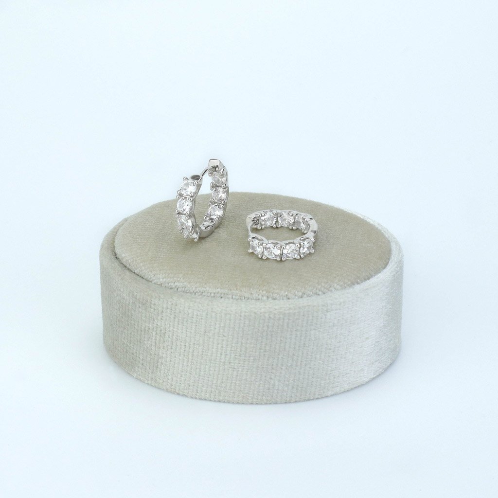 Elegáns ezüst fülbevaló az outfit szép kiegészítésére.
