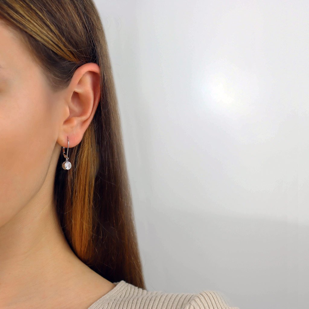 Elegáns ezüst fülbevaló az outfit szép kiegészítésére.