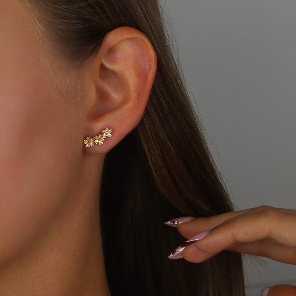 Elegáns ezüst fülbevaló az outfit szép kiegészítésére.
