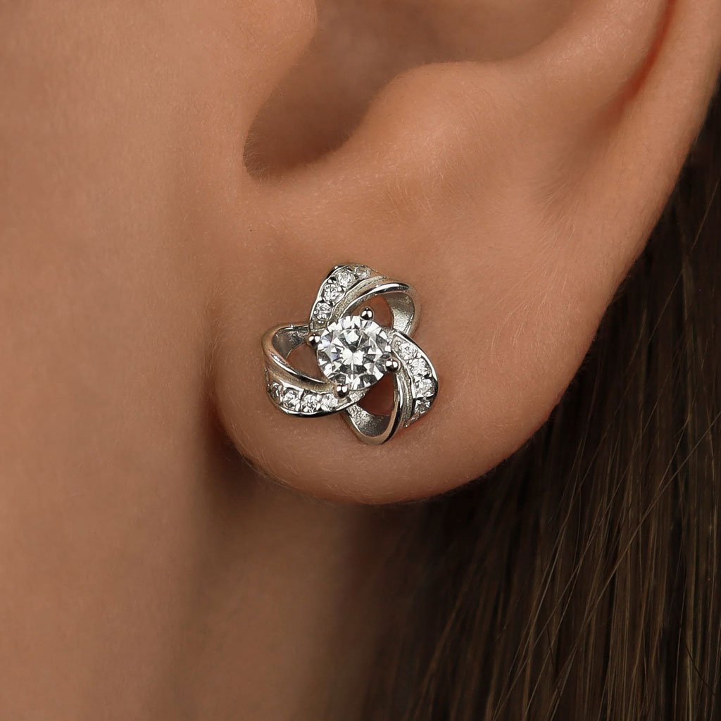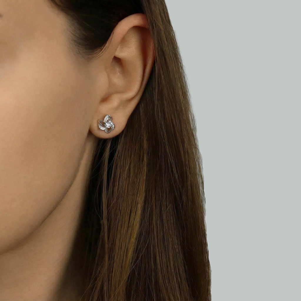 Elegáns ezüst fülbevaló az outfit szép kiegészítésére.