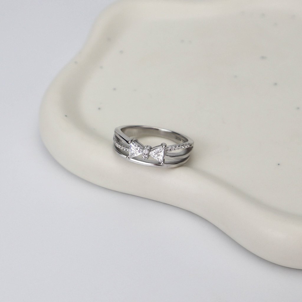 Elegáns ezüst gyűrű az outfit szép kiegészítésére.