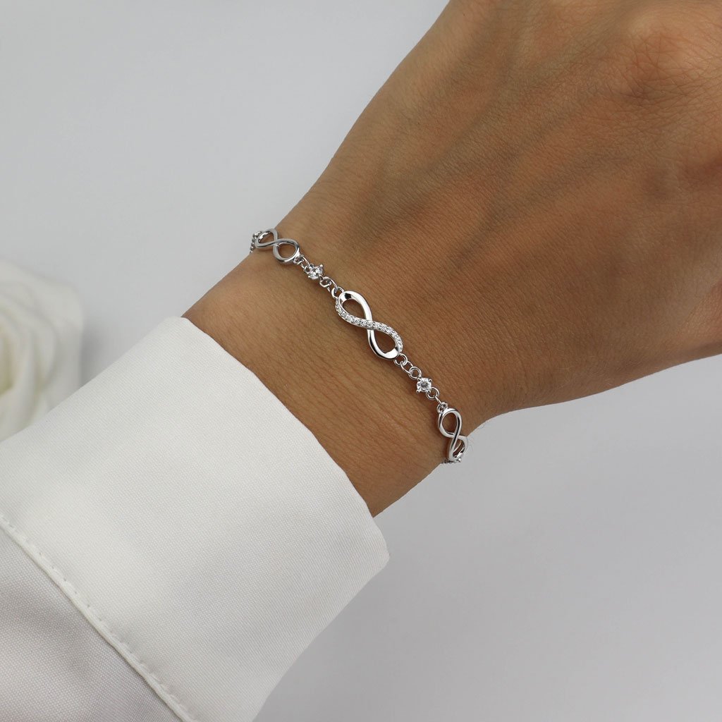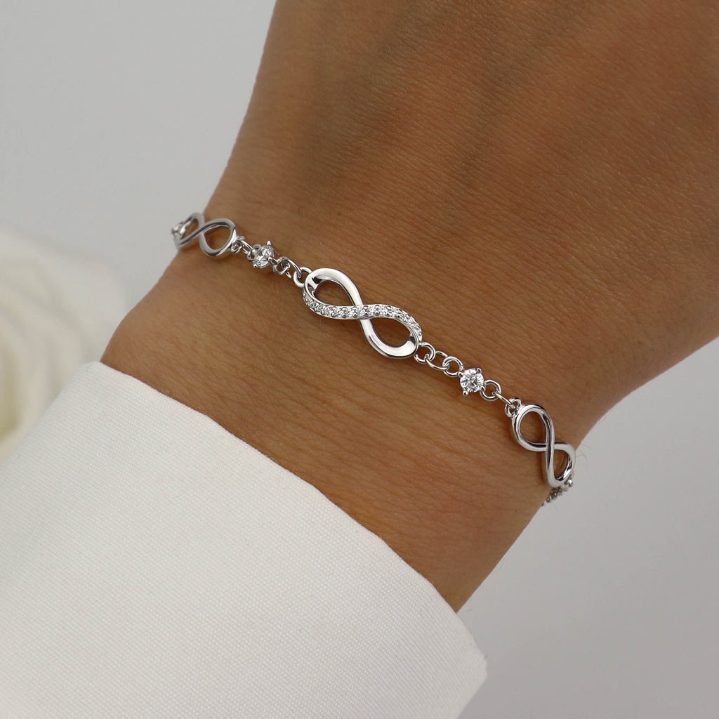 Elegáns ezüst karkötő az outfit szép kiegészítésére. Minden alkalomra megfelelő.