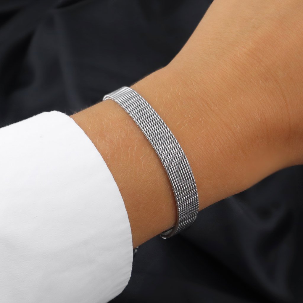 Hana elegáns karkötő az outfitu ízléses kiegészítésére. A karkötő minőségi sebészeti acélból készült, nem veszít szépségéből. Ellenáll a víznek, nem rozsdásodik és nem feketedik be.