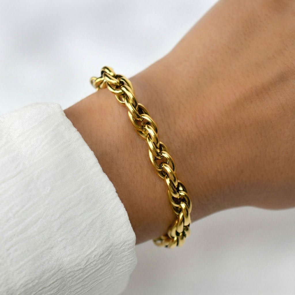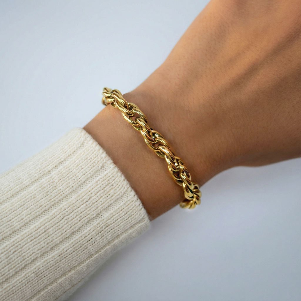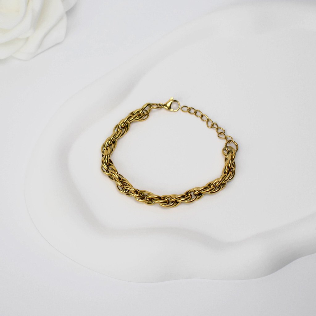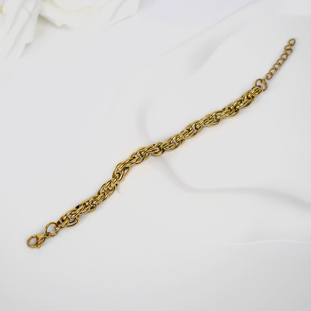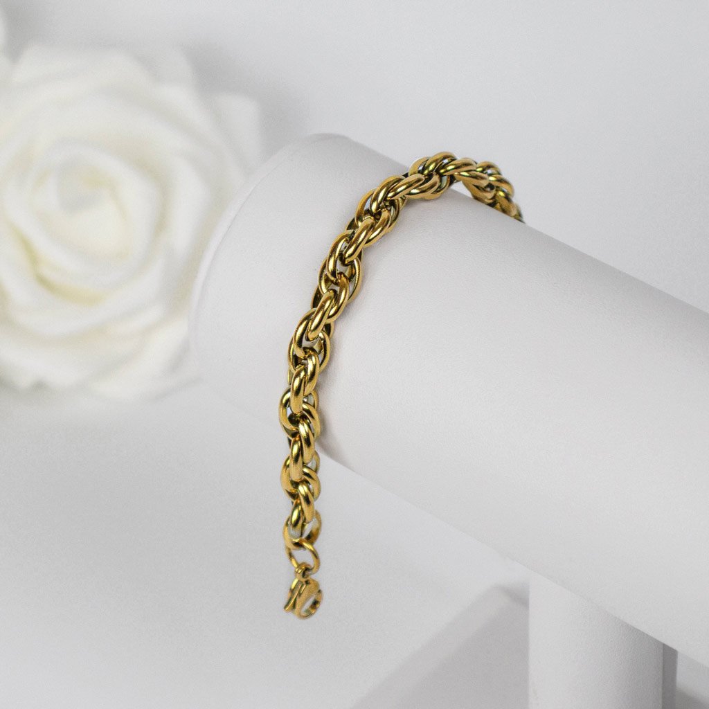 A karkötő minőségi sebészeti acélból készült, nem veszít szépségéből. Ellenáll a víznek, nem rozsdásodik és nem feketedik be.