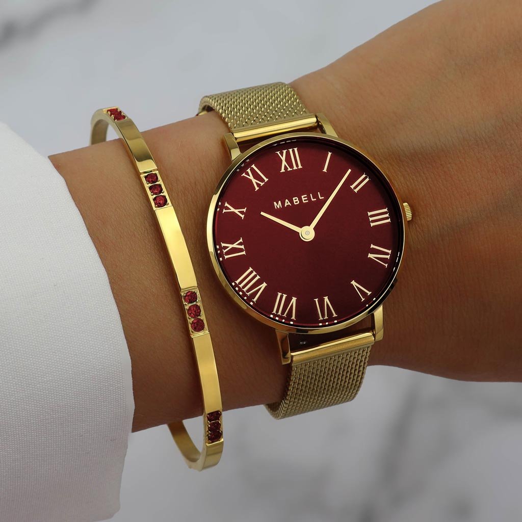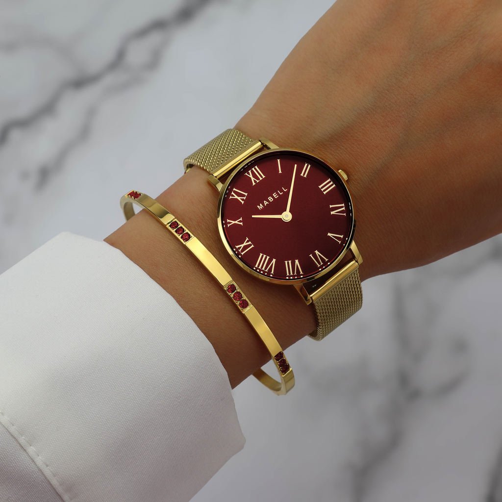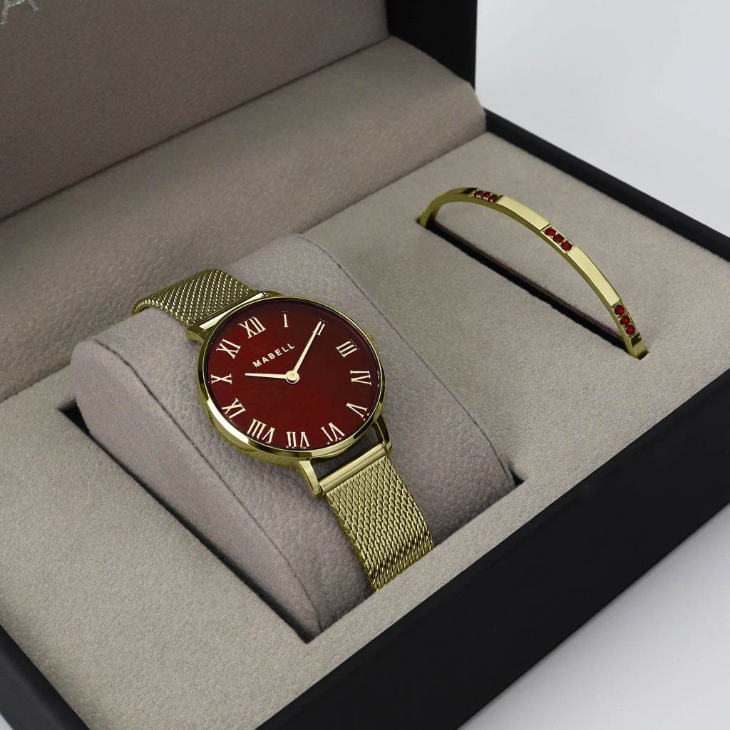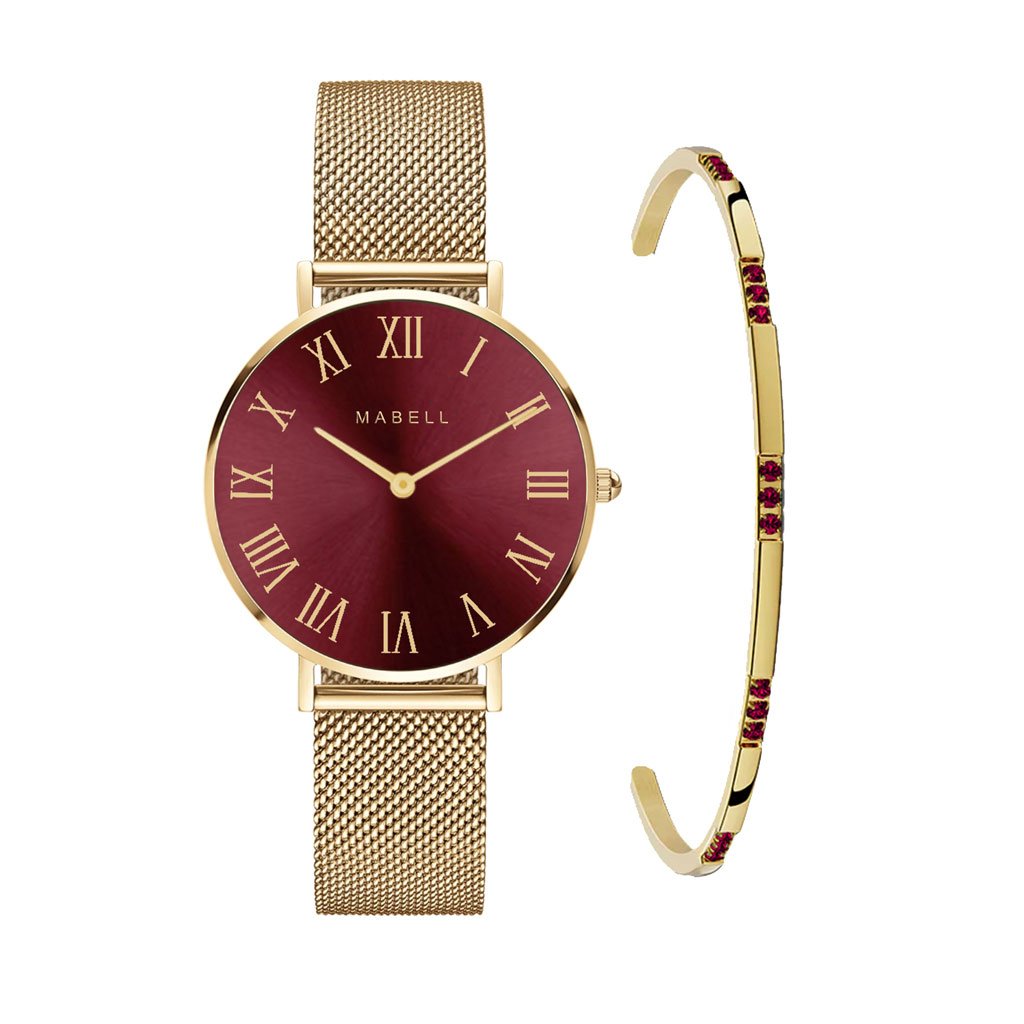 Sebészeti acélból készült óra és karkötő szett Royal - Gold/Burgundy